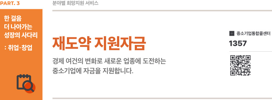 경제 여건의 변화로 새로운 업종에 도전하는 중소기업에 자금을 지원하는 ‘재도약 지원자금’에 대해서 소개드리겠습니다.