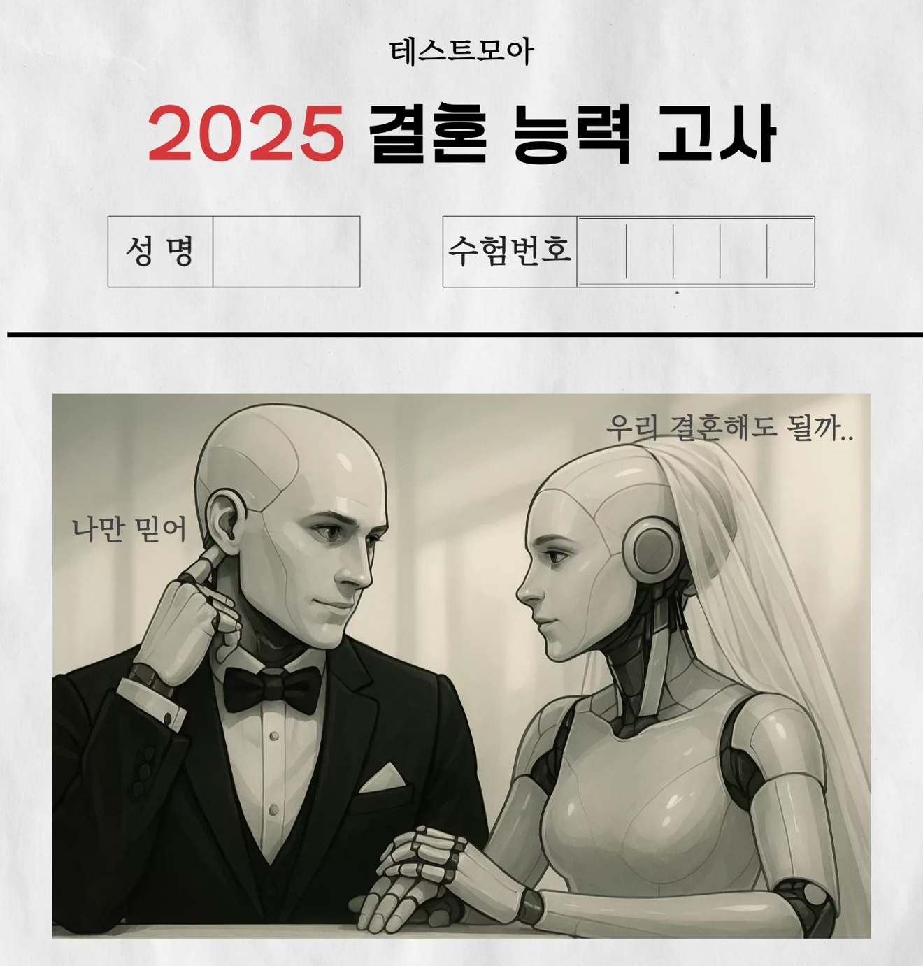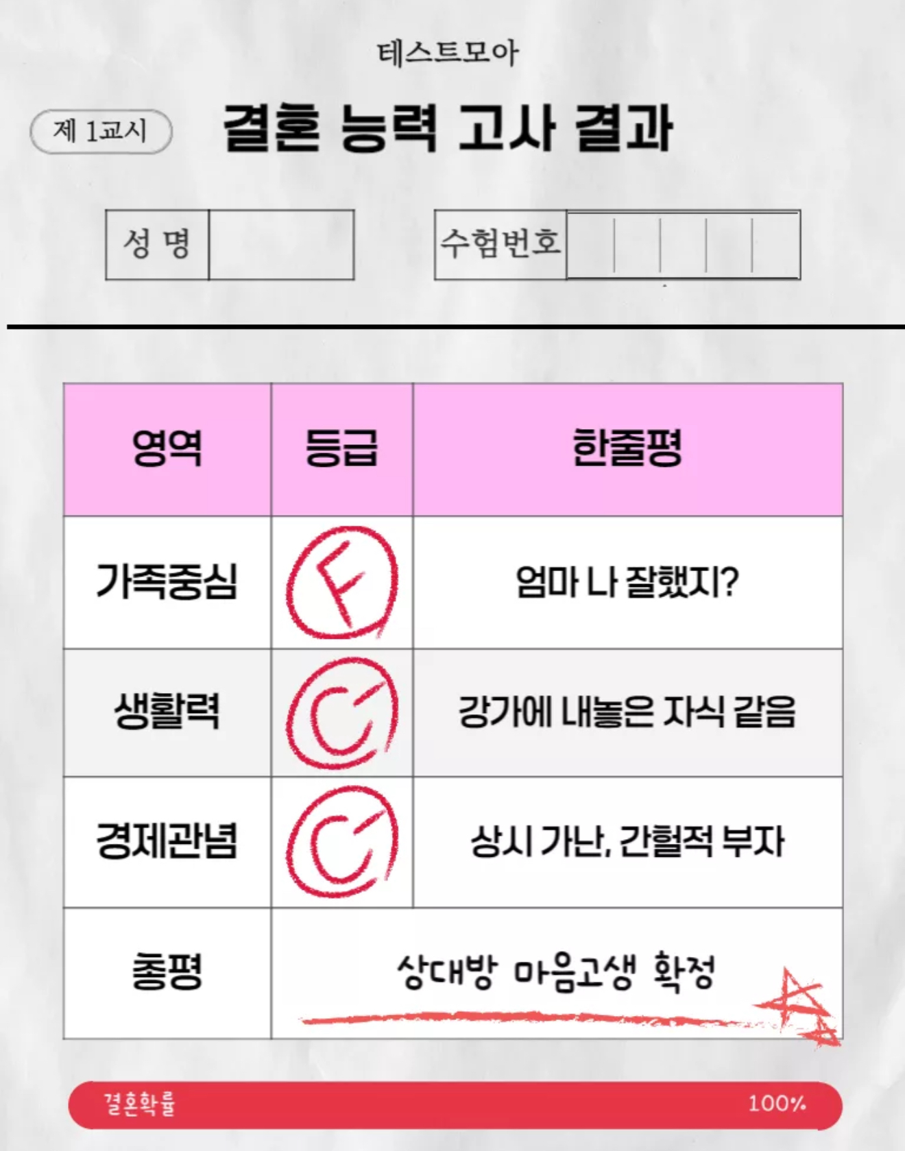 테스트모아라는 사이트에서 결혼할 수 있는 능력을 자세를 지금 가지고 있는지 알아보는 ‘결혼 능력 고사’라고 나왔는데 여러분들께 소개드리겠습니다.