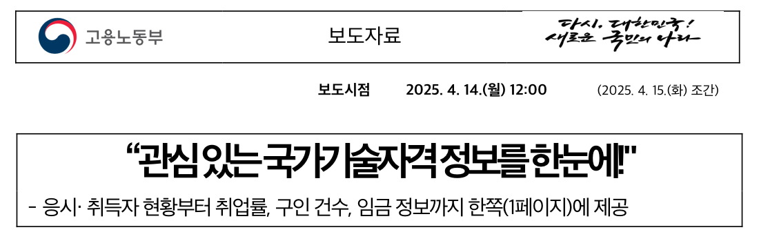 끝으로 고용노동부 임영미 직업능력정책국장은 “국가기술자격에 대한 상세한 정보는 취업, 창업 및 경력개발 등 자신에게 맞는 국가기술자격을 선택하는 데 큰 도움이 될 것”이라며, “고용노동부는 앞으로도 국민에게 필요한 양질의 국가기술자격 정보 제공을 위해 다각도로 노력하겠다”라고 밝혔습니다