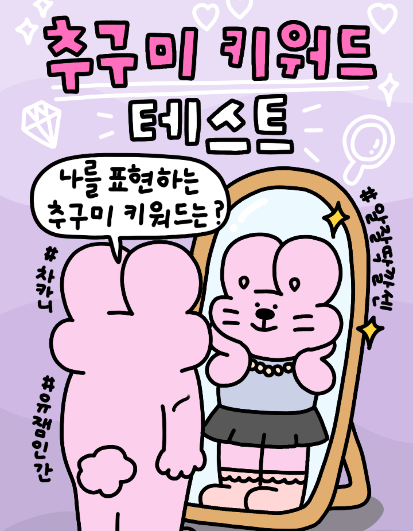 망이들의 추구미는 뭔지 테스트하고 나만의 추구미 키워드를 찾아보고 나를 위한 행운의 치트키까지 GET 가능한 푸망에서 나온 ‘추구미 키워드 테스트’를 소개드리겠습니다.