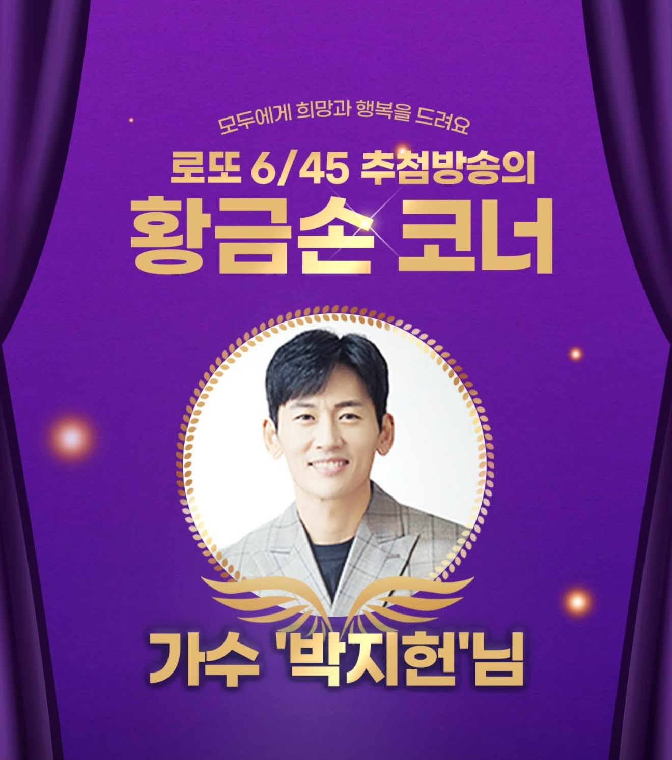 가수 박지헌이 MBC ‘생방송 행복드림 로또 6/45’ 1,175회 ‘황금손’으로 출연한다고 합니다.