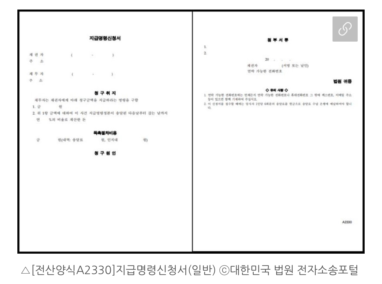 이런 경우, 돈을 받기 위해 지급명령신청서를 이용할 수 있다고 합니다.