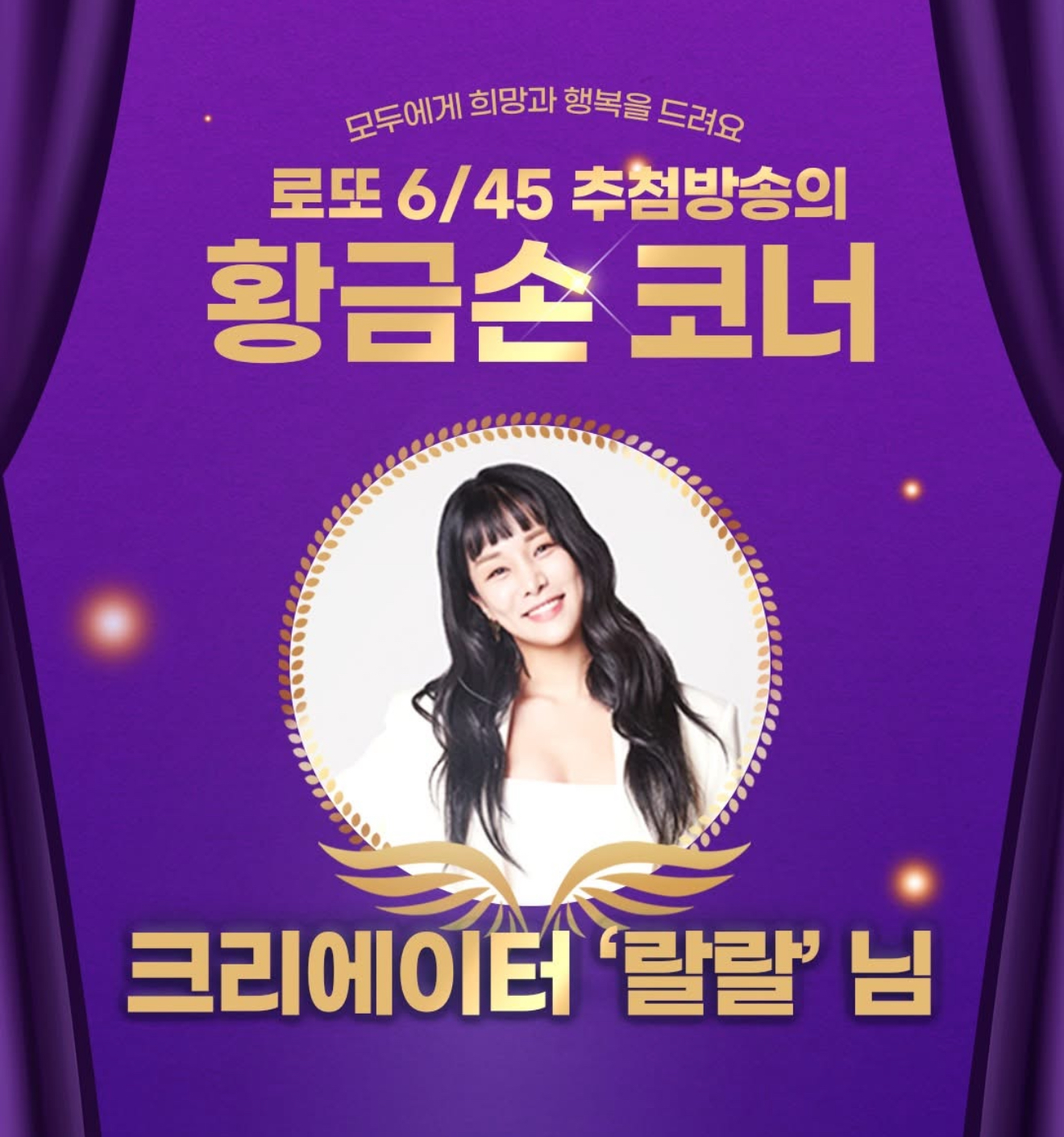 2025년 6월 두 번째 추첨일인 이날 유쾌한 콘텐츠 속에서도 따뜻한 나눔을 잊지 않는 크리에이터 랄랄이 제341대 ‘황금손’으로 초대됐습니다.