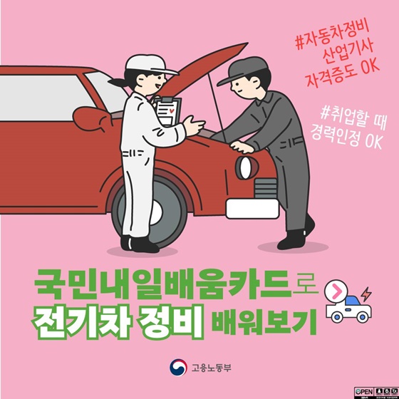 국민내일배움카드로 전기차 정비 자격증 취득이 가능합니다.