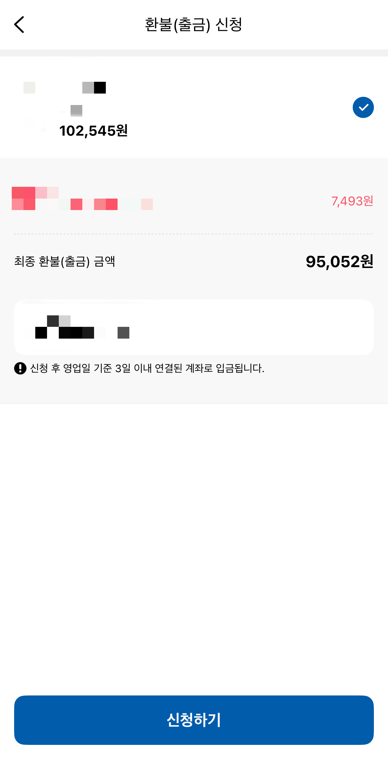 - 그 외의 경우, 환불(출금) 수수료 500원이 부과됩니다.