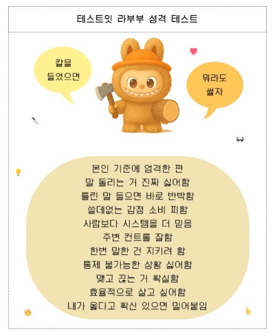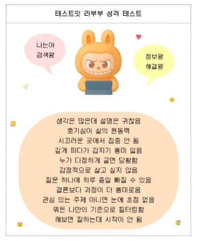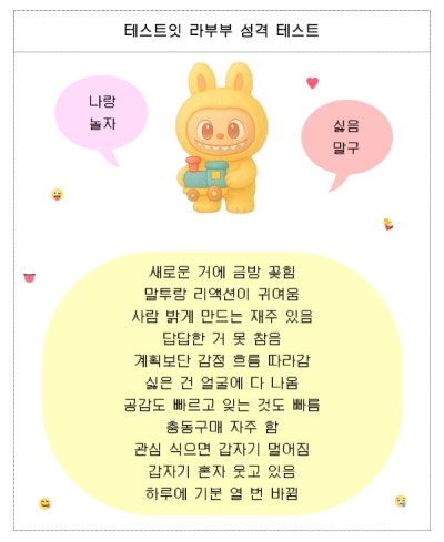 이 유행에 더불어 테스트잇이라는 사이트에서 ‘라부부 성격 테스트’도 등장 했는데 여러분들께 소개드리겠습니다.