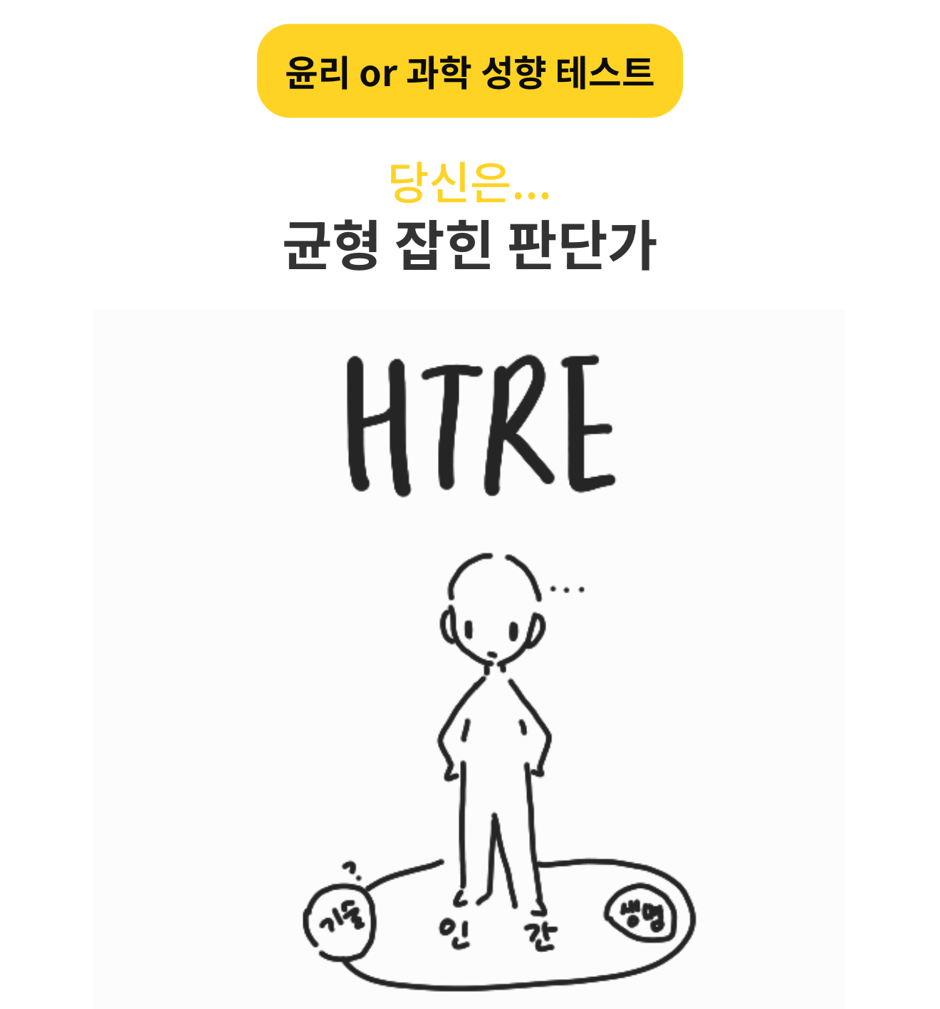 나는 윤리적인지 과학적인지 나눠보는 ‘윤리 or 과학 성향 테스트’가 있어서 여러분들께 소개드리겠습니다.