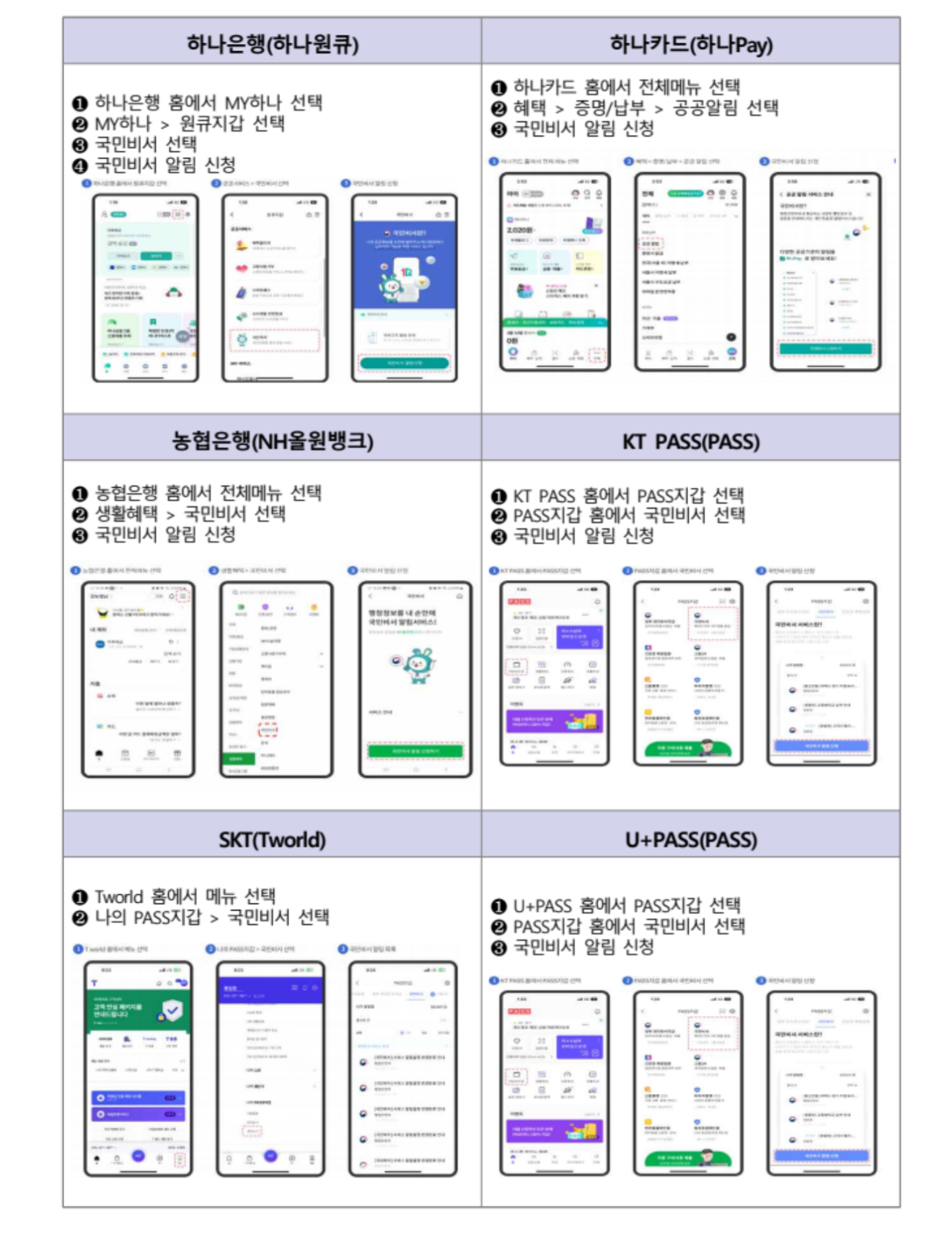 * 국민비서 메뉴 위치는 앱에 따라 상이하므로 자세한 내용은 국민비서 누리집 이용안내 참조