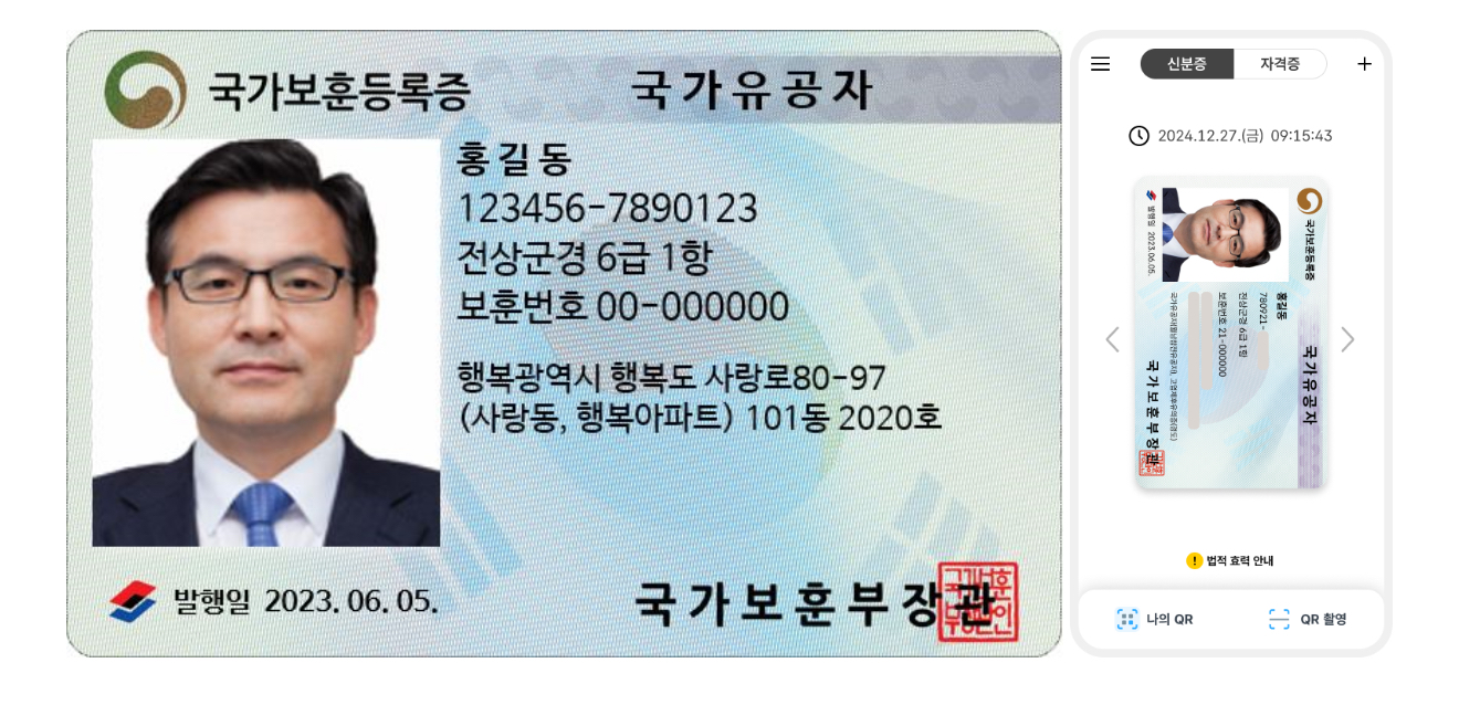 1. 국가보훈등록증(실물 카드 또는 모바일 신분증)에서 확인