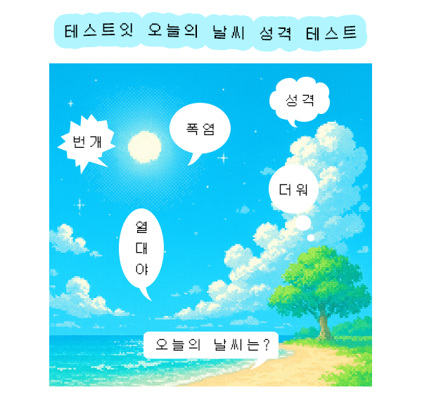 테스트잇이라는 사이트에서 ‘오늘의 날씨 성격 테스트’라고 나왔는데 재밌어서 여러분들께도 공유드리고자 합니다.