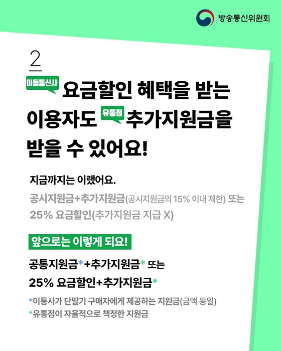 아울러 이동통신사로부터 단말기 지원금을 받지 않은 이용자에 대한 요금할인제도는 유지한다고 합니다.