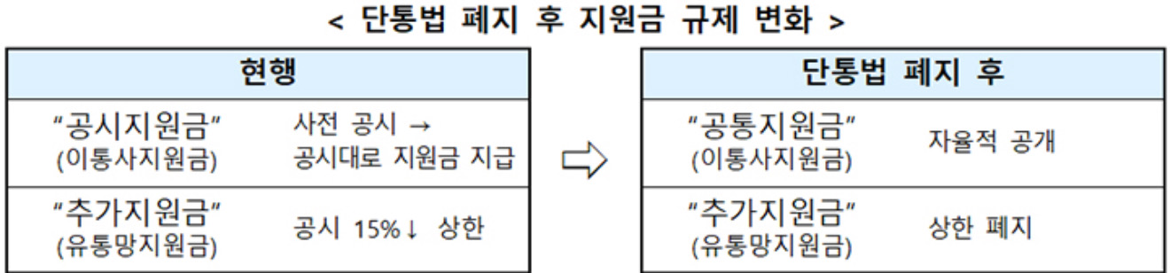 이에 따라 단통법체제에서는 음성적으로 지급하던 초과 지원금(공시지원금의 15% 초과)도 공개적으로 지급할 수 있을 것으로 기대된다.