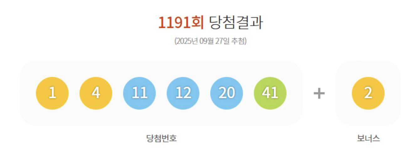 2025년 9월 28일 제1191회 로또 당첨번호 조회 결과가 발표되었으며 이번 로또 1등 당첨지역까지 같이 공개되었습니다.