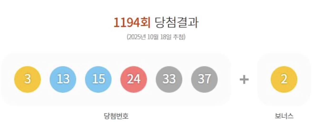 2025년 10월 18일 제1194회 로또 당첨번호 조회 결과가 발표되었으며 이번 로또 1등 당첨지역까지 같이 공개되었습니다.