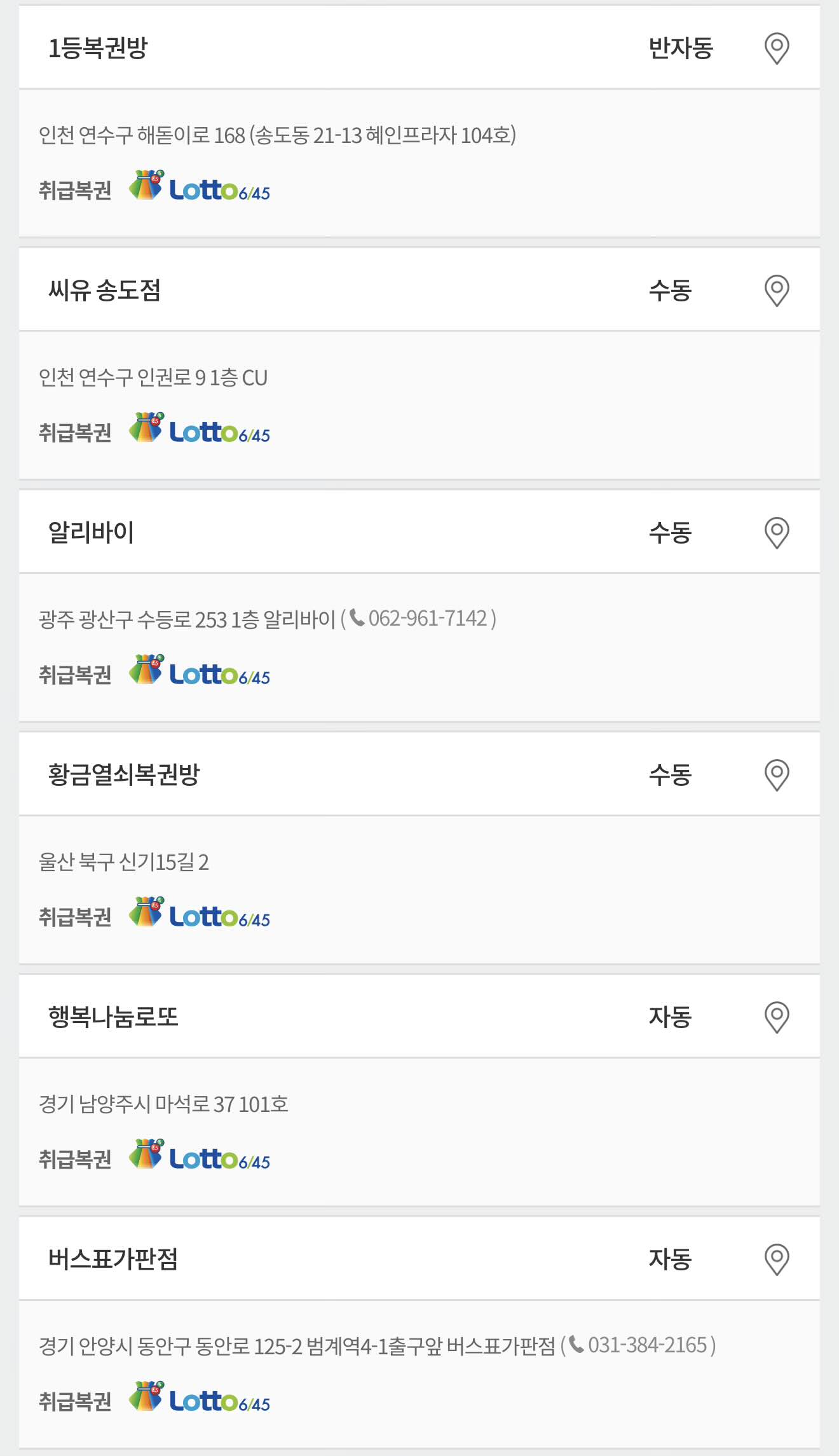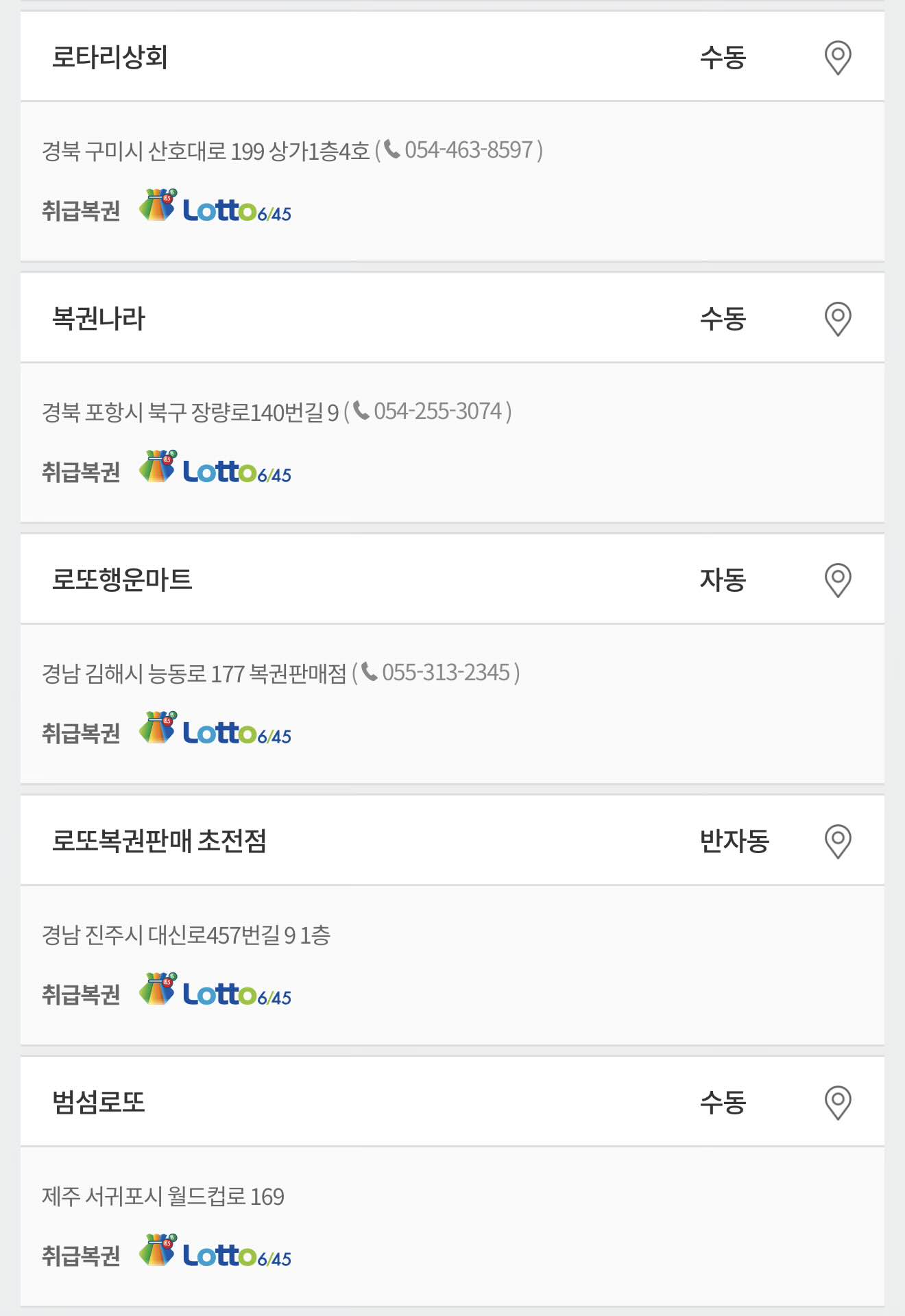 경남 김해시 능동로 177 복권판매점 (☎ 055-313-2345)