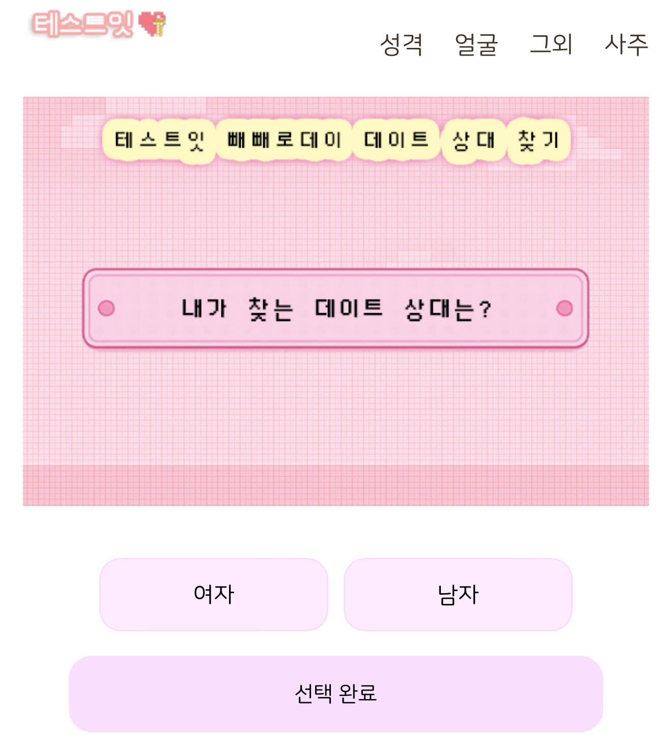 테스트를 시작하면 내가 찾는 데이트 상대는 누군지 고르라고 나옵니다.