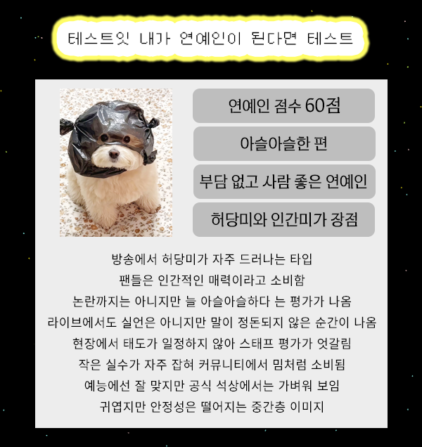 연예인 점수 60점이 나왔습니다.