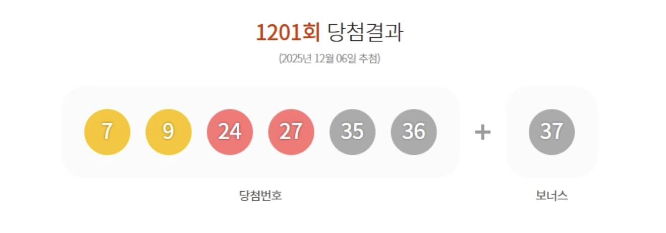 2025년 12월 6일 제1201회 로또 당첨번호 조회 결과가 발표되었으며 이번 로또 1등 당첨지역까지 같이 공개되었습니다.
