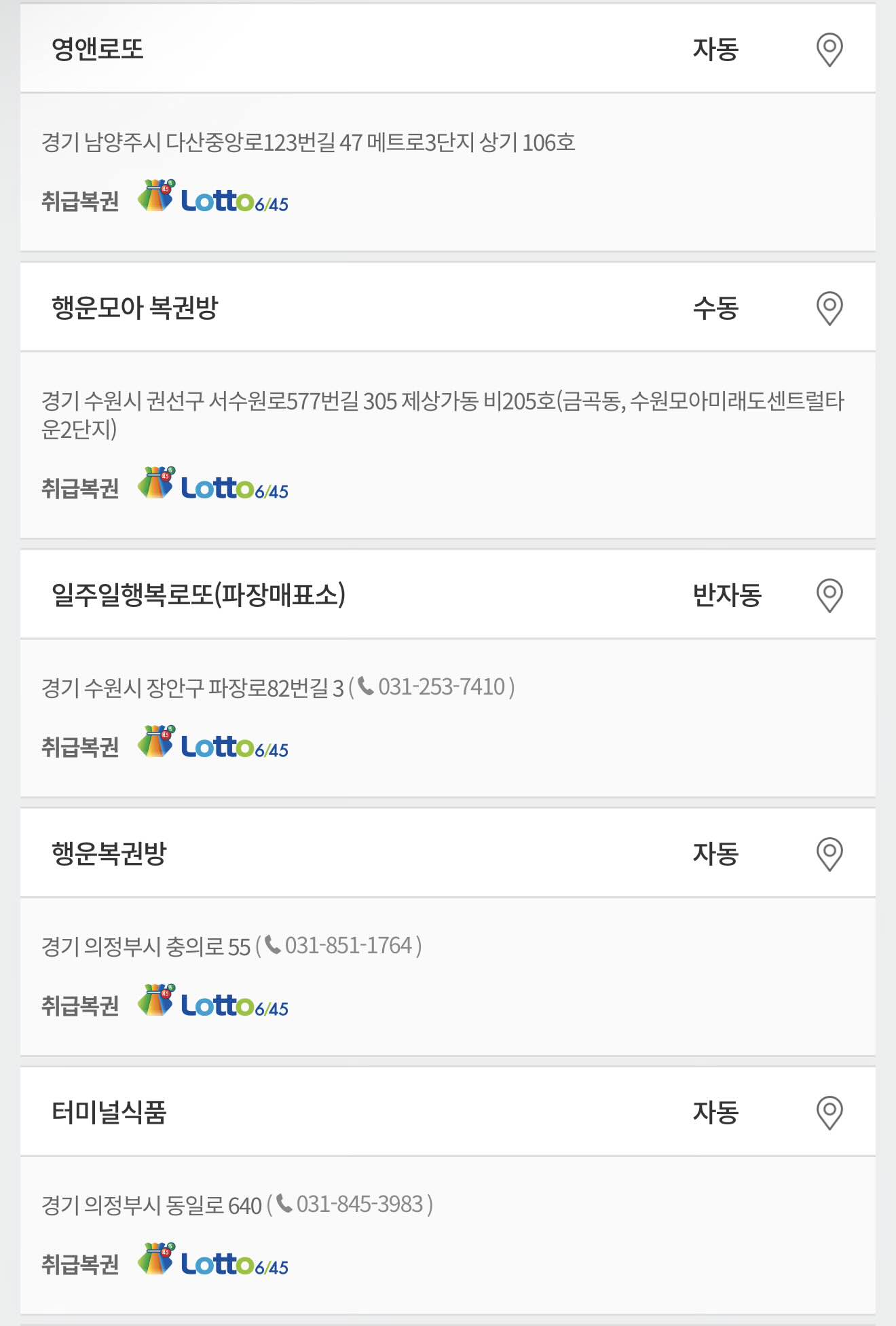 일주일행복로또(파장매표소) 반자동