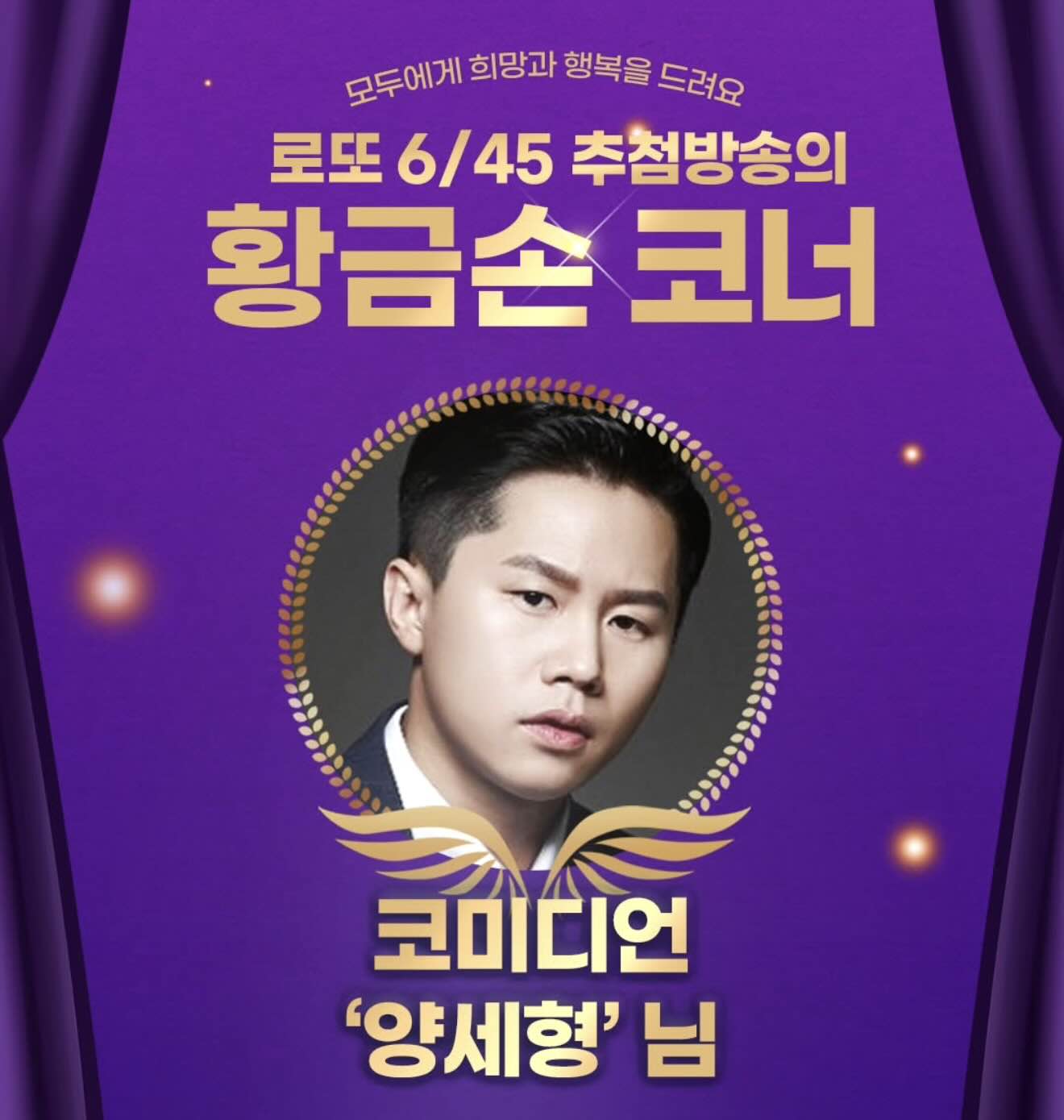 양세형은 MBC '생방송 행복드림 로또 6/45' 1,206회의 ‘황금손’으로 출연한다고 밝혔습니다.