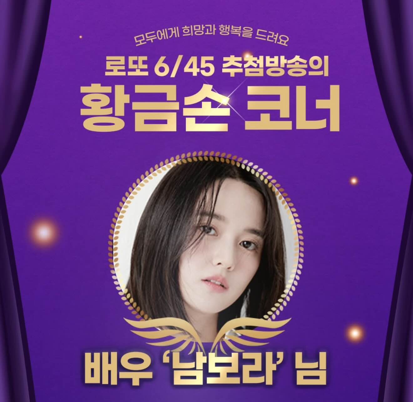 배우 남보라가 1,207회 MBC <생방송 행복드림 로또 6/45>의 ‘황금손’으로 출연한다고 합니다.