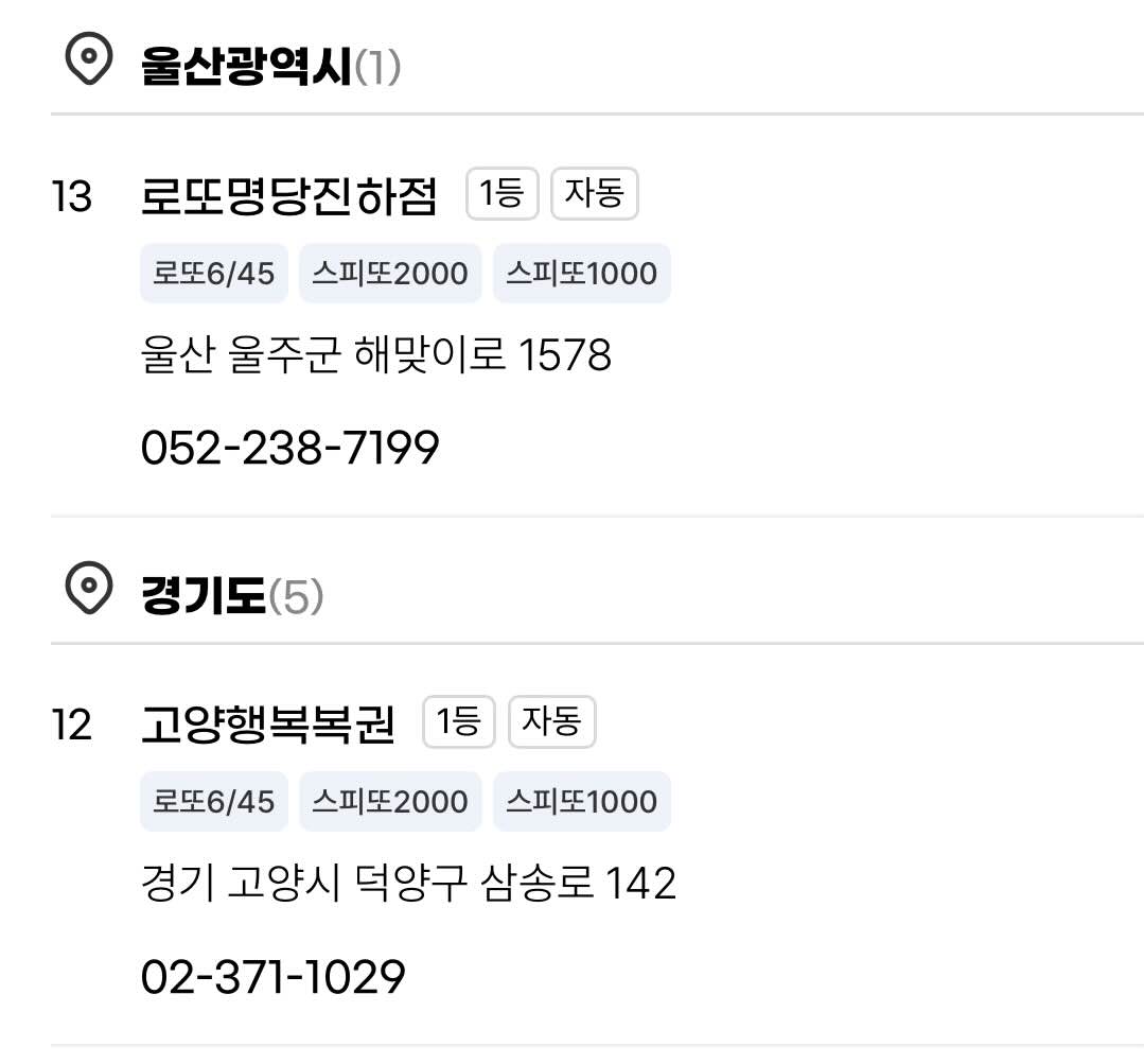 로또 2등과 3등은 지역 농협은행 각 지점에서(농협 중앙회 기준)