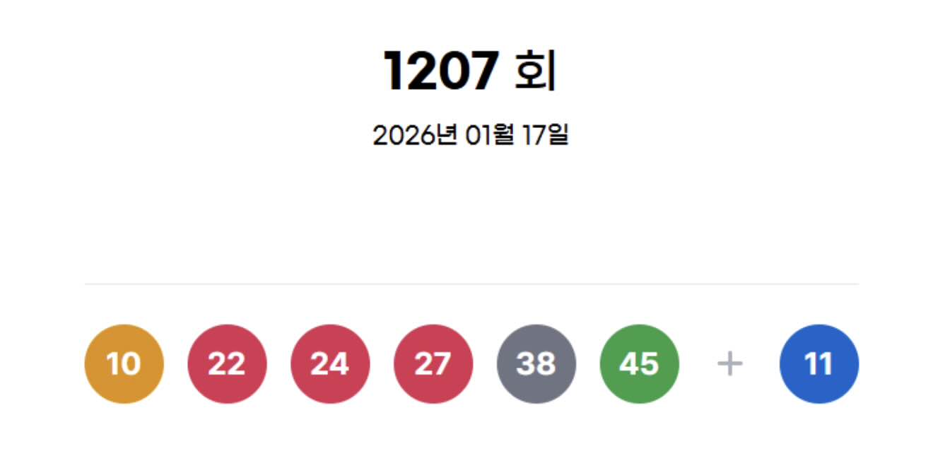 2026년 1월 17일 제1207회 로또 당첨번호 조회 결과가 발표되었으며 이번 로또 1등 당첨지역까지 같이 공개되었습니다.