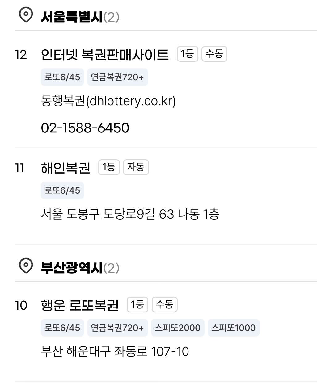로또 2등과 3등은 지역 농협은행 각 지점에서(농협 중앙회 기준)