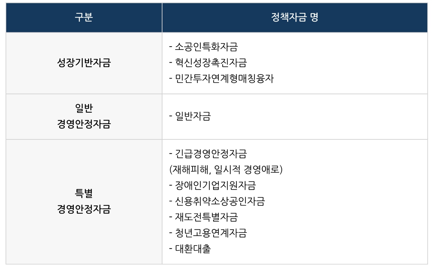 - '정책자금 한눈에 보기'로 정책자금 비교하기