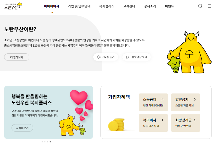 - 노란우산 복지플러스 누리집(https://yumam.kbiz.or.kr/yuma/index.do)
