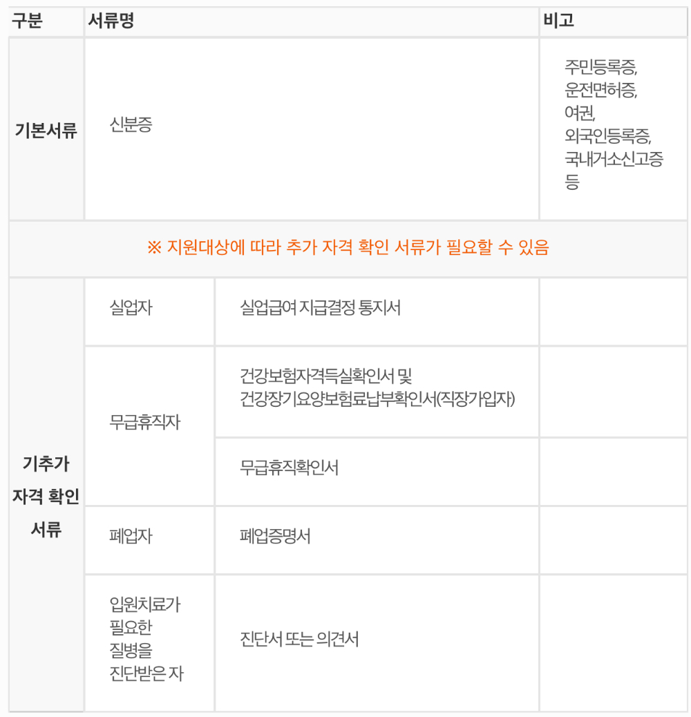 ※ 신청 요건과 지원대상, 신청서류는 소득, 재산, 채무 등 신청자의 상황에 따라 다르게 적용될 수 있으므로 상담을 통해 정확히 확인해 주시기 바랍니다.